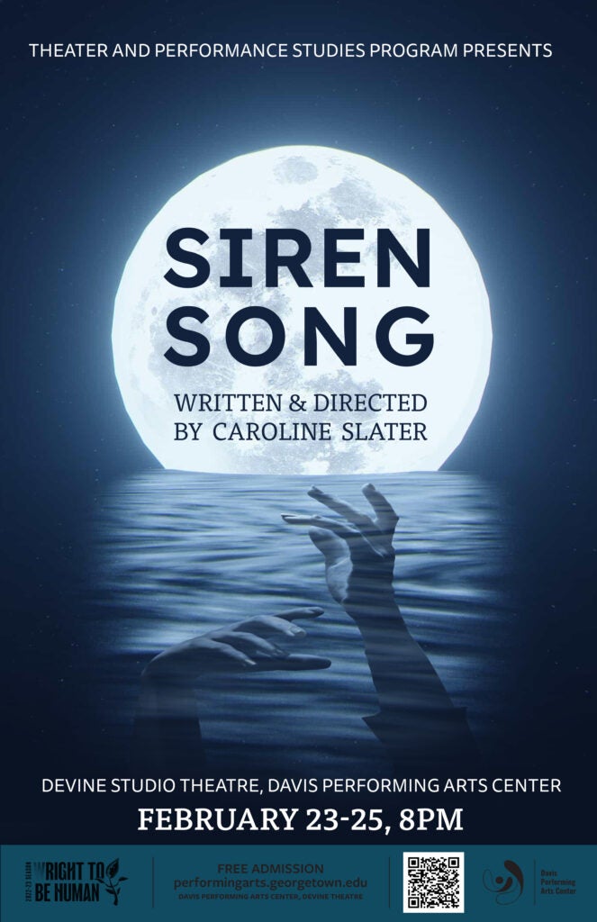 Throughout my senior year as a Theater & Performance Studies major at Georgetown, I have had the privilege of indulging in this lifelong fascination. Working with my fellow classmates and Georgetown’s renowned faculty, I developed my senior thesis; the script that you will hear read and sung tonight, Siren Song. Thank you for coming and I sincerely hope you enjoy it.